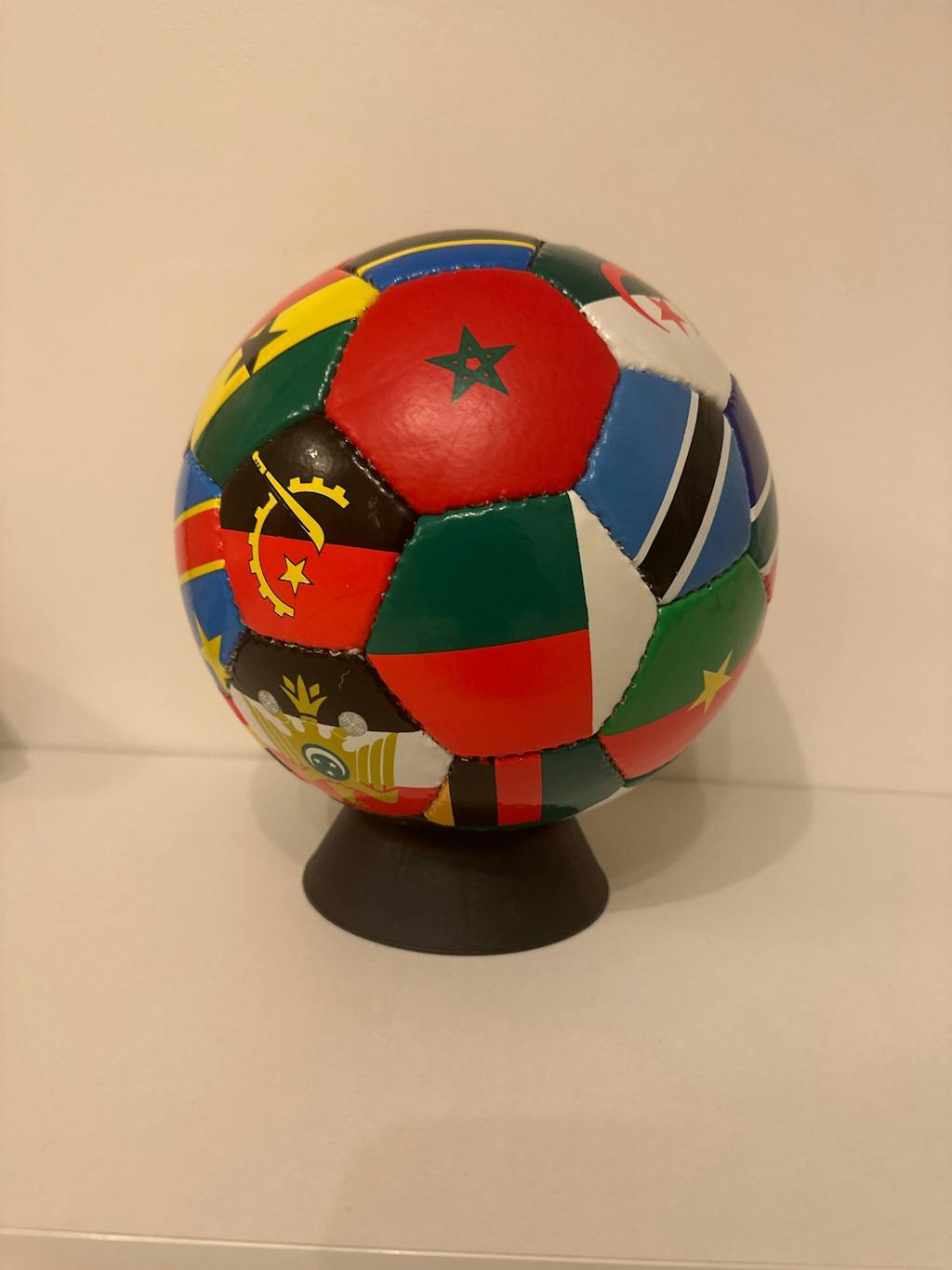 ⚽ Ballon de football taille 5 : conçu en PU 1,2 mm, 4 couches cousu à la main, avec les 30 drapeaux africains imprimés – un design exclusif, résistant et haut de gamme.